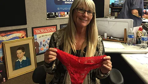 Kristi shows us how to tie up long hair with thong panties.